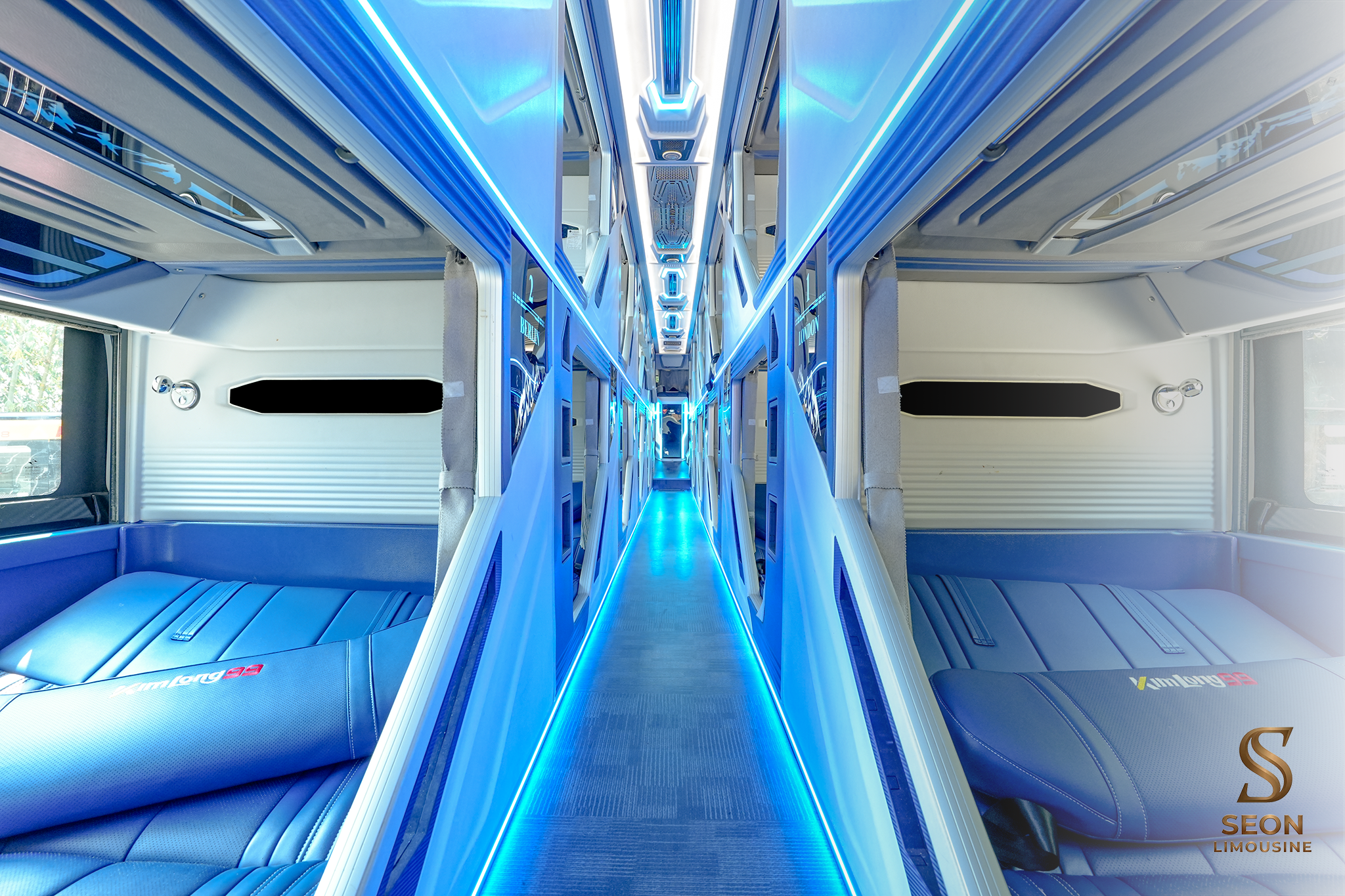 Nội thất bên trong mỗi phòng nằm đôi được thiết kế như một phòng khách sạn mini di động với tông màu sang trọng và tinh tế. Hệ thống đèn LED hiện đại và ấm cúng được bố trí khoa học, mang lại cảm giác dễ chịu ngay khi bạn bước chân vào xe. Sự phối hợp hài hòa giữa ánh sáng dịu nhẹ và chất liệu nội thất cao cấp giúp tâm trí hành khách dễ dàng thư giãn suốt hành trình. Với sức chứa dành cho 02 người lớn, không gian này tại Seon Limousine cực kỳ phù hợp cho những chuyến đi hâm nóng tình cảm hoặc những đôi bạn thân cùng nhau khám phá miền đất mới trên tuyến xe phòng đôi đi Hà Nội và Quảng Ninh.